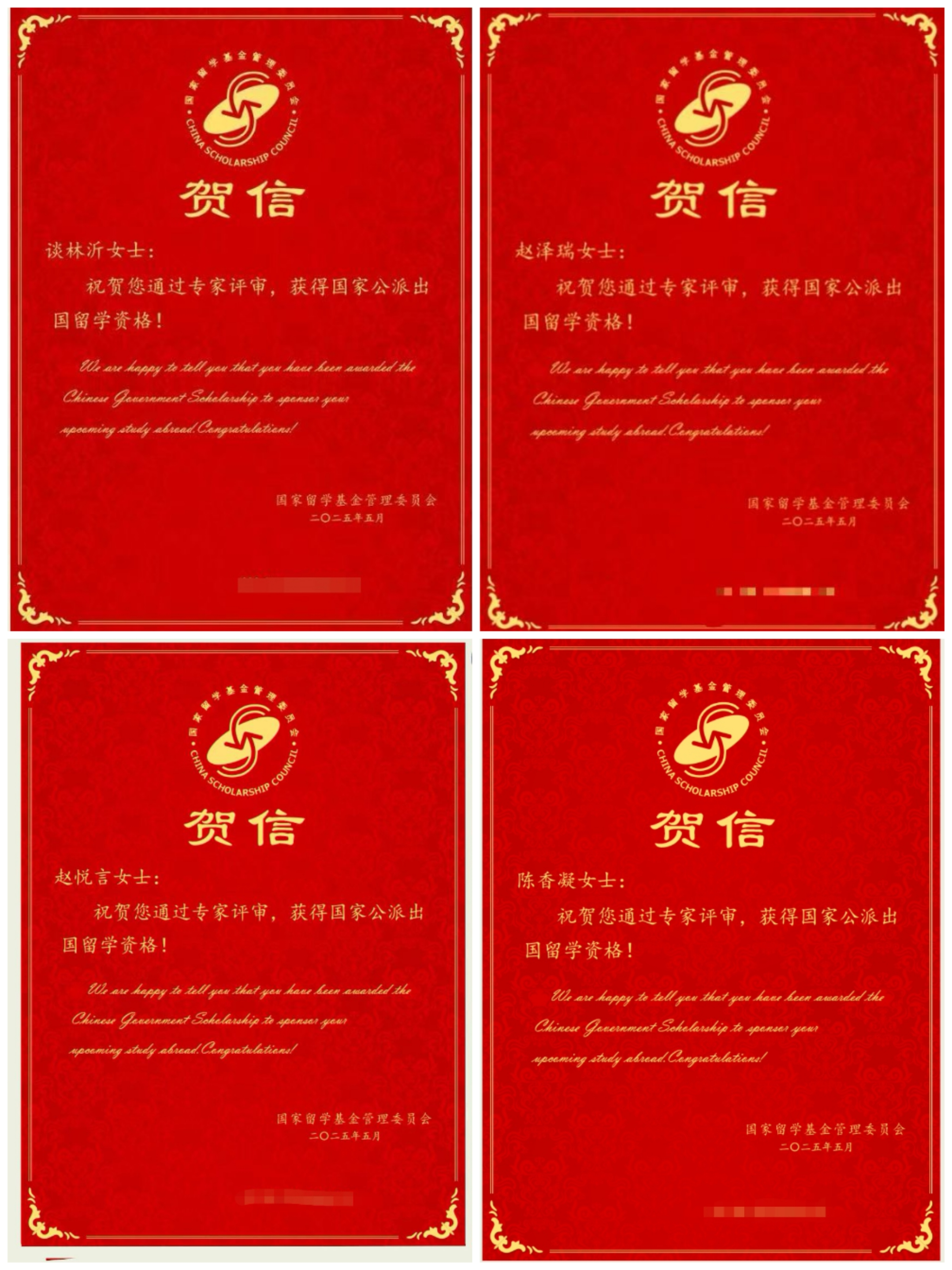 CSC国家公派留学奖学金旨在资助优秀学子赴世界一流院校深造,培养具有国际视野的创新型人才。此次四位博士生同时入选,充分体现了我院在高层次国际化人才培养方面的显著成效。